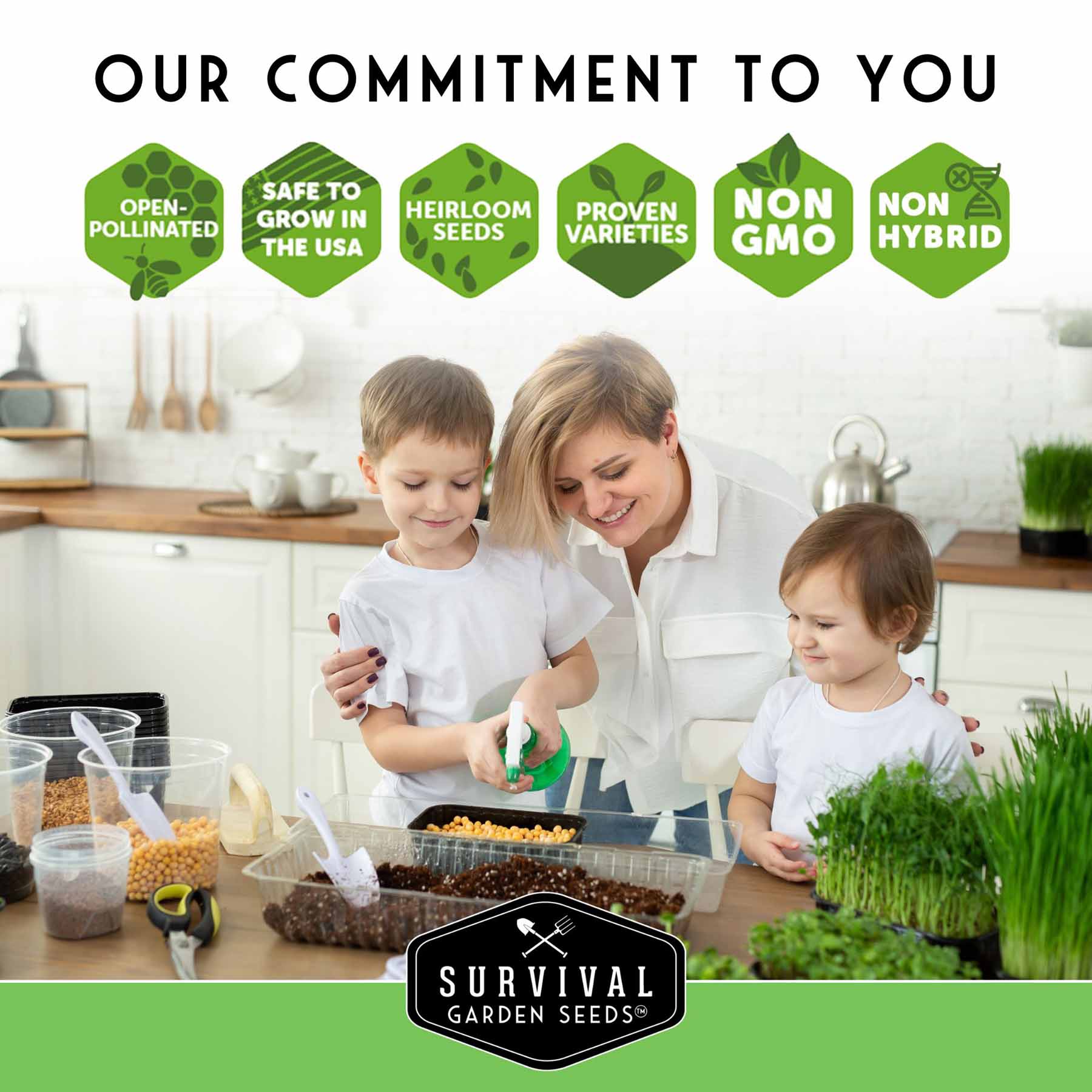 Also known as vegetable confetti or micro herbs, microgreens provide prime nutritional benefits in a tiny amount of space, like in your kitchen or on your windowsill. Survival Garden Seeds self starter mix allows you to grow microgreens in bulk like the pros within days. An excellent choice for urban setting where garden space is limited. All you need to get started is a tray, some dirt, a water mister, and you're own your way to becoming a microgreen grower.