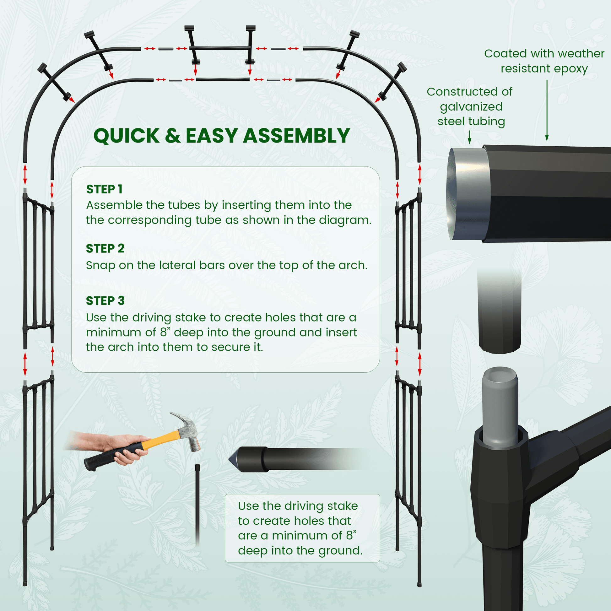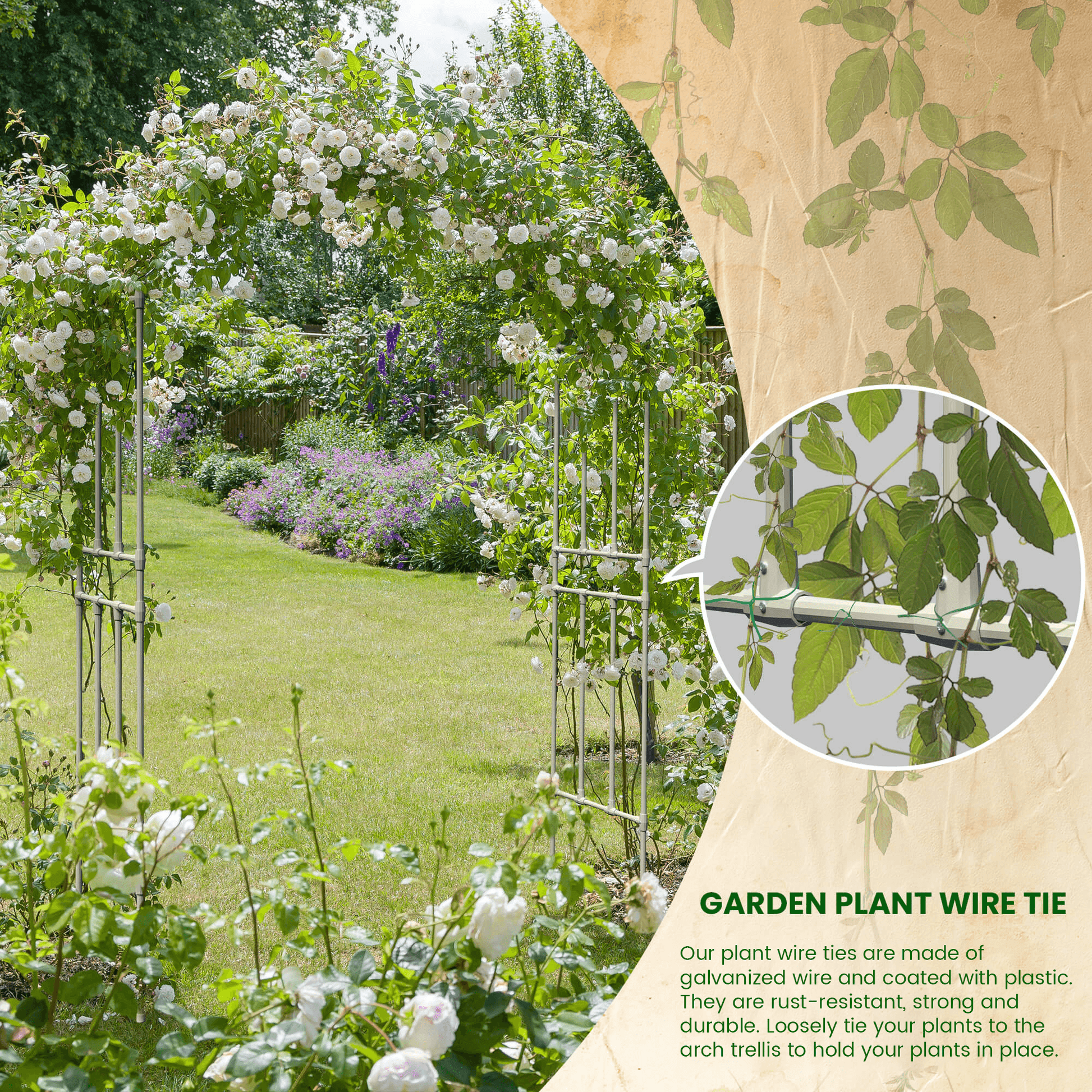 Olle's heavy-duty garden arch trellis is perfect for climbing plants and flowers. Manufactured from galvanized steel coated with polyethylene, these arch trellises are rust-resistant and are built to last. Extend your growing space and expand into vertical gardening with our arched trellis to provide space for additional plants in your metal raised garden beds.