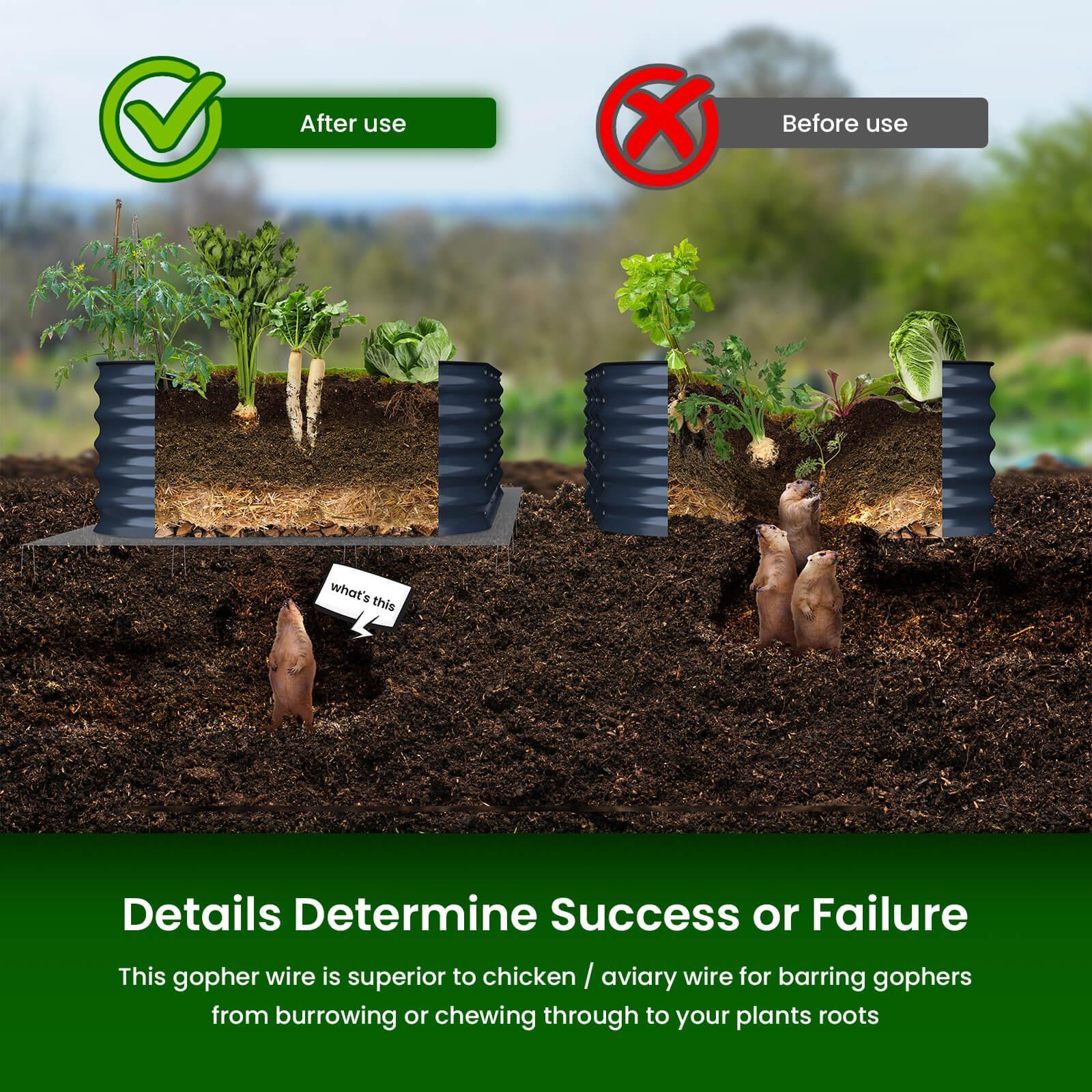 Olle's Gopher Netting is specifically designed to protect your plants from being damaged by gophers, rats, moles, snakes, and other burrowing animals without affecting drainage or root development. They are environmentally-friendly and chemical-free.